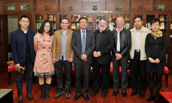 正在上海参加2014(第七届)中国新西兰电影节的新西兰奥克兰电影协会主席兼会长Pete、首映影片《永恒》的导演Alex、新西兰太平洋文化艺术交流中心主席和志耘等一行4人于4月25日访问太阳成集团tyc122ccvip。