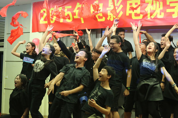 游戏环节紧随其后,这次依旧是通过击鼓传花的方式挑选上台的对象,这次选出的是主持系的师兄师姐、编导系的师兄师姐和15级的新同学在你划我猜的节目中找到了默契,也为台下的观众带来欢乐。
