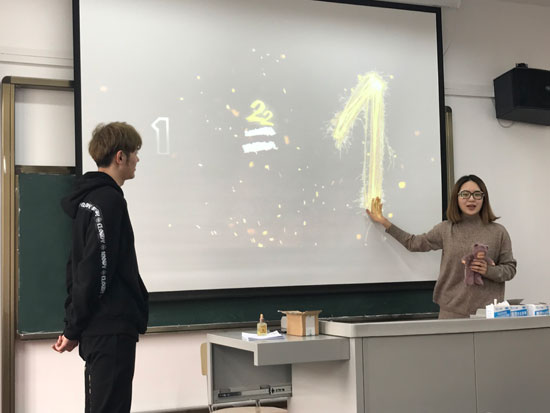 古有“字如其人”,今有“物如其人”。会上,王新竹同学首先发声:“物品交换会,副标题是’跟随灵魂找到你’。我认为,每一个物品都代表着每一个人他自己的性格,每个人的物品背后也都有着每个人独有的故事和灵魂。”随后徐帅同学向大家介绍物品交换的规则:“同学们上交的物品事先按1-22编好序号,同学们将会按照抽到的顺序依次拿到对应的物品,最后贡献物品的同学向拿到物品的同学发表30秒的赠言。”接下来,各位同学按照抽签顺序依次走向讲台,领取抽到的物品。在同学们分享的物品中,有实用型的可口美食、隐形眼镜清洗仪、发膜等,还有观赏型的公仔、动漫手办、复古钥匙扣等。事实上,每一件或小或大的物品背后,都蕴藏着同学们暖暖的爱意和不为人知的故事。