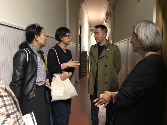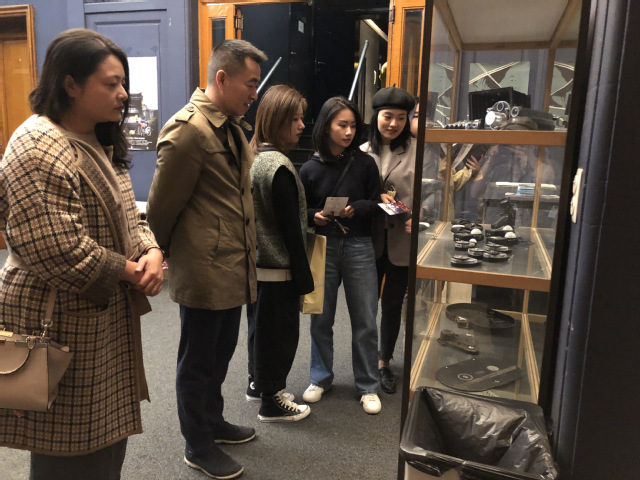 本院师生参观了INSAS公司,在教学楼处处可见员工创作的故事版、知名国内外电影的海报、“古董”相机及大量胶卷。INSAS的老师向师生们介绍,虽然未来员工们创作都是用数码产品,但在大一大二使用胶卷可以让员工们在创作上更集中于画面的感受,培养敏锐的感受是艺术创作中最基础的。最让人印象深刻的就是他们的摄影基础课程:将世界名画作为主要元素。通过解读分析名画上的光影、构图、色彩比例等来达到教学的目的。党支部书记魏东晓老师及廖媌婧老师对此非常感兴趣,INSAS校方赠予我们课程光盘,让我们可以更深入的了解。