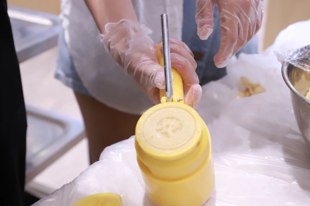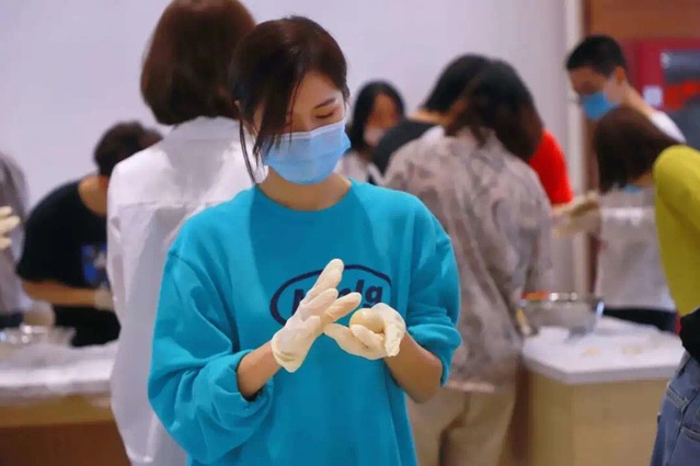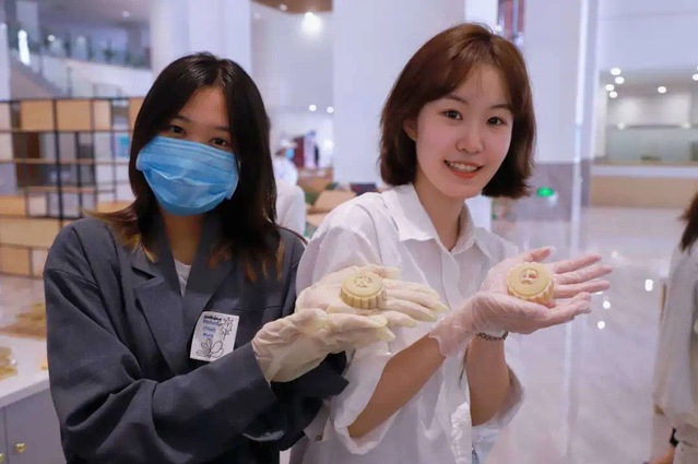 “第一次尝试就遇到了各种问题,但在王师傅的指导下,一枚枚定制月饼逐渐成型。”