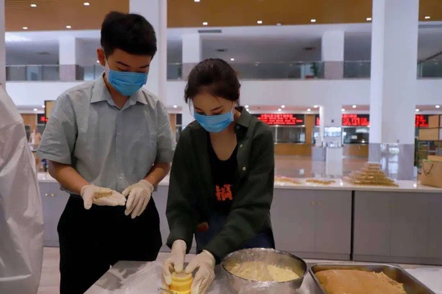 同学们在食堂忙得不亦乐乎,称重量、分馅料、压模型……虽然都是“新手上路”,但在王师傅的指导下,每一步都做得格外用心。