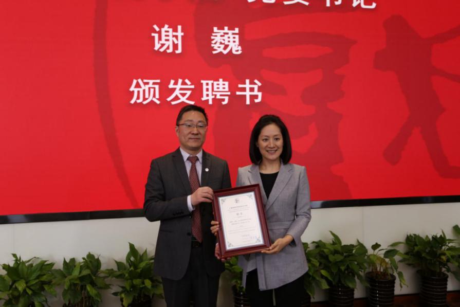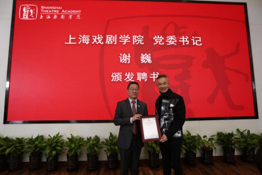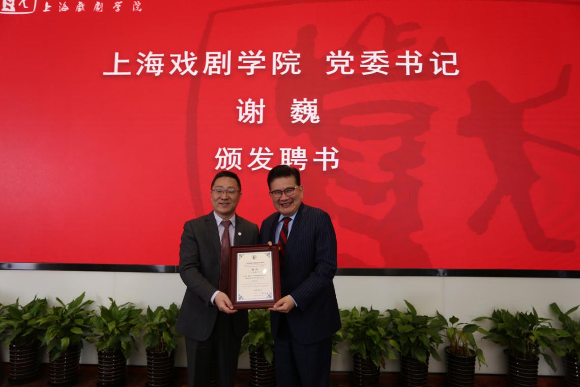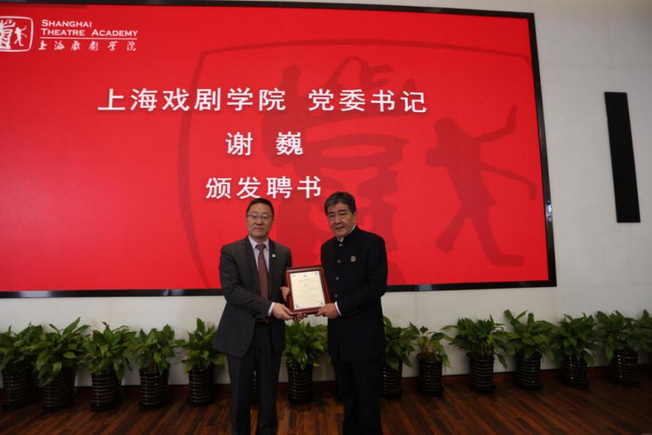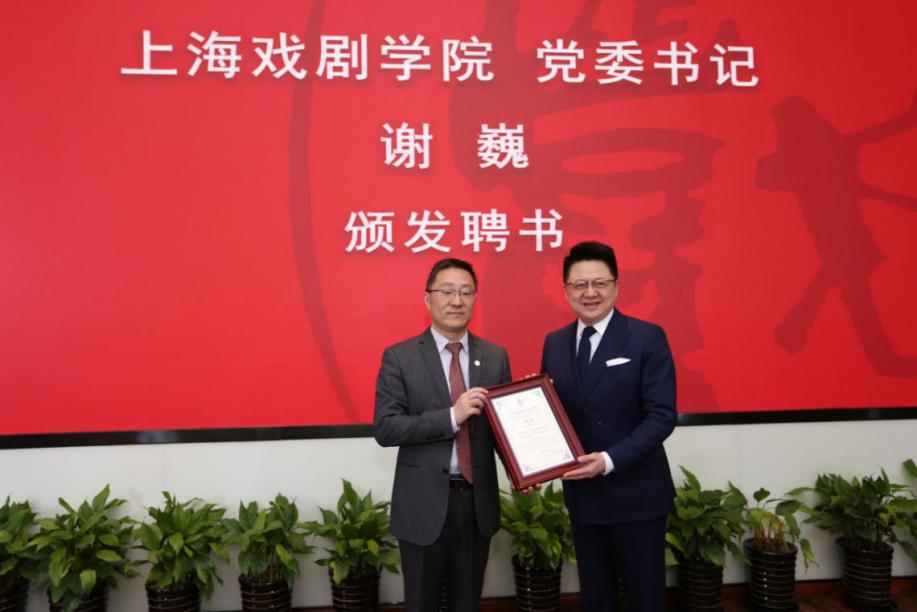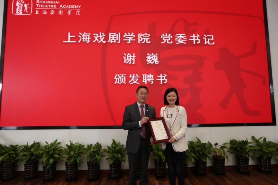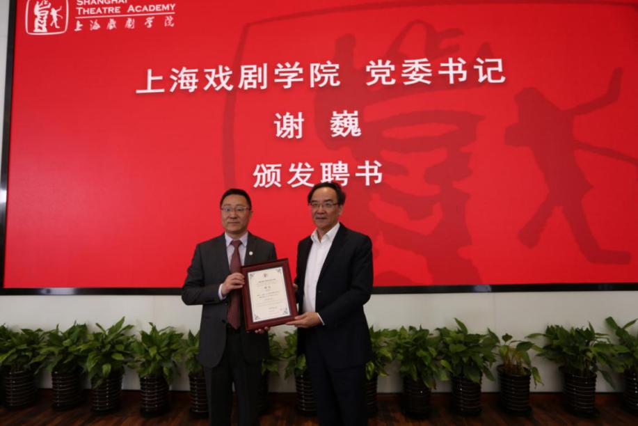 图为上海戏剧公司党委书记谢巍为PT计划专家颁发聘书