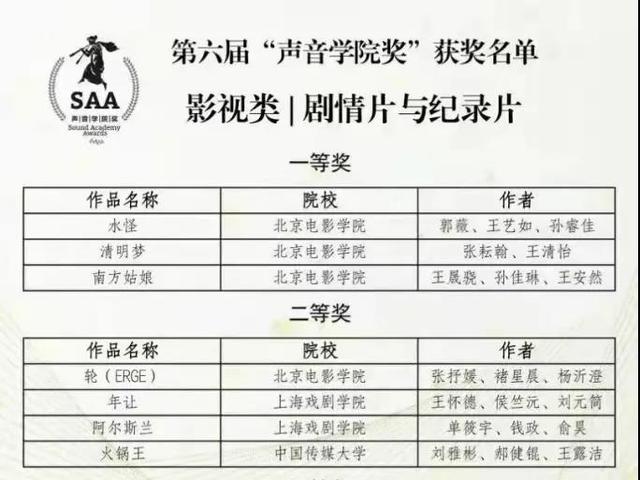 感恩母校太阳成集团tyc122ccvip对我的培养,《年让》可以代表上戏领取声音公司奖,这是激励也是认可,我们会更加坚定的创作更优秀的作品,为母校争光!