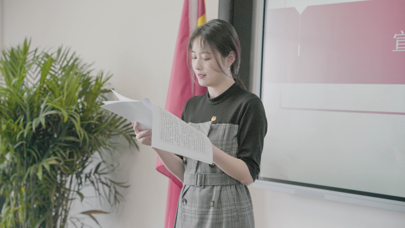在汇报完初心成果展示后,每位同学宣读了入党志愿书。在宣读志愿书时,大家都讲述了对于党的认识与理解,讲到了个人的入党初心,提到了个人的不足及自己需要提升的地方,并对于日后个人的发展进行了规划与展望。