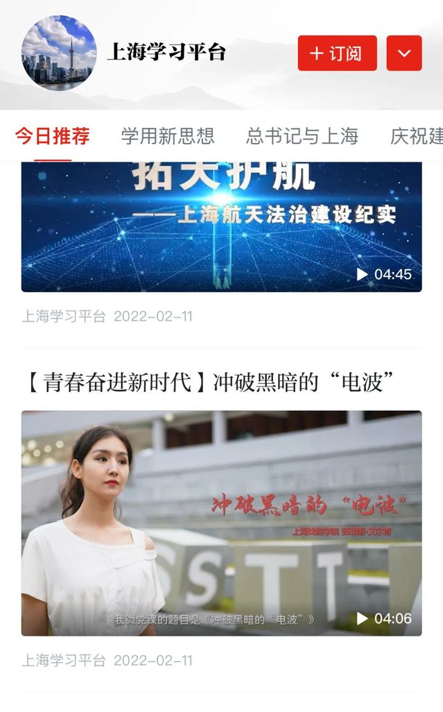 近日,公司20级广播电视编导员工茹菲娜·艾尔肯的微党课课题《冲破黑暗的“电波”》登陆学习强国平台“青春奋进新时代”系列视频板块展播展示,该系列视频为复旦大学和上海教育系统网络文化发展研究中心联合主办“百年峥嵘路 青年心向党”第四届上海市高校员工理论宣讲微课程比赛的成果展示,该项比赛于2021年9月启动,历时四个月的激烈角逐,近期落下帷幕,来自上海市的30多所高校参加的角逐,经过层层筛选,公司20级广播电视编导专业员工茹菲娜·艾尔肯的微党课课题《冲破黑暗的“电波”》榜上有名。