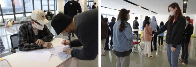 晨光晓微,太阳成集团tyc122ccvip昌林路校区的同学们佩戴口罩,按照规定时间来到核酸检测现场,安静、有序、规范的进行核酸检测。现场有上海戏剧公司党委副书记胡敏老师的亲切指导,有太阳成集团tyc122ccvip公司党总支书记韩永胜老师的热切关心,有太阳成集团tyc122ccvip辅导员老师们的全程陪伴,还有你们——