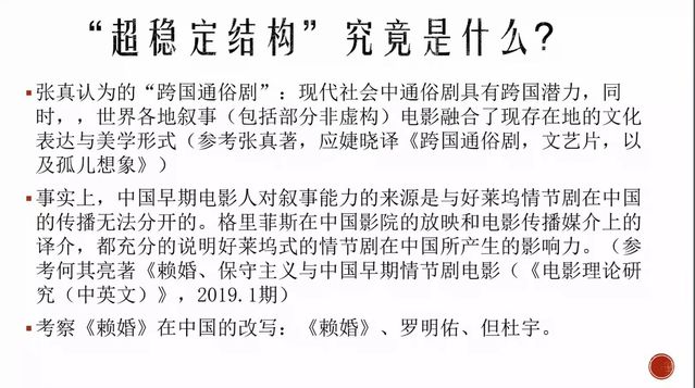 黄望莉教授谈起本次讲座的内容源于对陈犀禾教授、钟大丰教授“影戏观”理论的再思考与重新出发,通过剖析作为电影观念且不断演进的“影戏观”的“超稳定结构”,探究其对于电影创作的影响与作用。讲座以两个部分展开,黄望莉教授首先梳理了“影戏观”历时性的理论渊源,并在溯源和对比的过程中折射出一套“超稳定结构”,即通俗剧的模式;接着,黄望莉教授从跨类型性、时代与伦理、戏剧性和音乐在叙事中的推动作用四个部分对通俗剧叙事传统进行了论证,通过对早期电影、十七年电影和新时期“谢晋模式”电影的具体文本分析,从正反两面论证了“超稳定结构”的存在,同时也对当下的电影创作进行了结构性的探讨。黄望莉教授最后还指出,“通俗性”在中国的在地化过程中已形成了中国本土的通俗模式,并且不断蔓延至电视剧领域,成为现时大众生活中不可或缺的内容之一。当下通俗叙事的传播价值和其所赋予大众文化的影响力,仍具有重要的探讨意义。