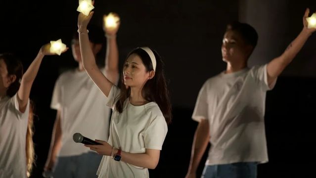 由贾庆飙、葛浩涵等同学演唱的歌曲《哗啦啦少年再见》《在云端》《如果我们不曾相遇》过往的片段在这一刻悄然绽放,既鲜活又明亮。