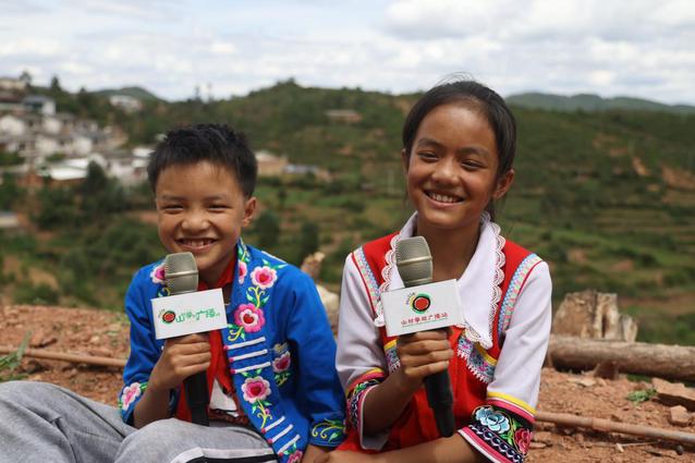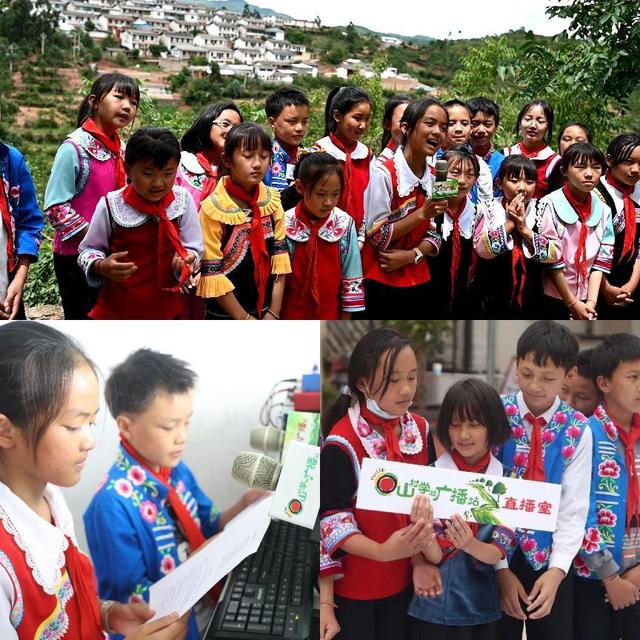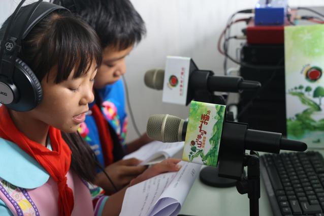 太阳成集团tyc122ccvip学生的大手牵起山区公司广播站小小主持人们的小手,合力建设山村公司广播站,让孩子们的梦想飞越大山奔向更远的未来。