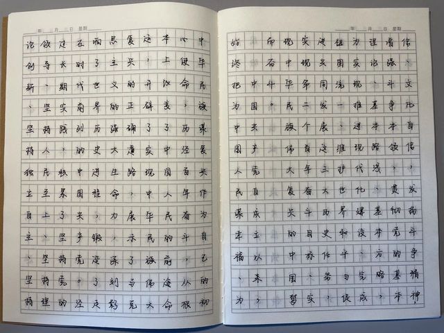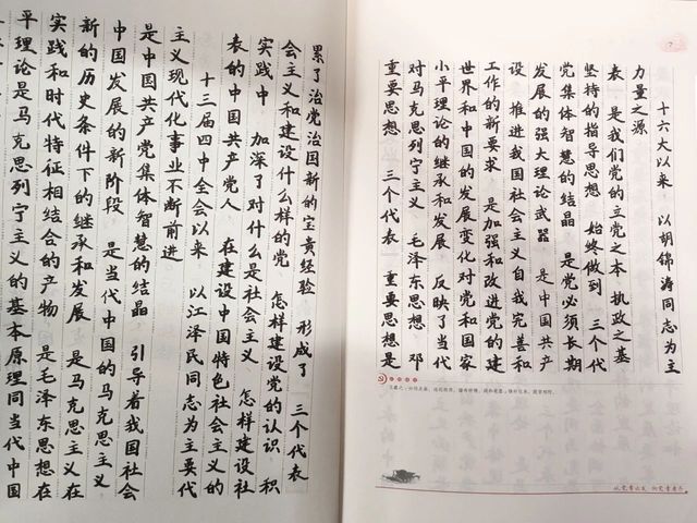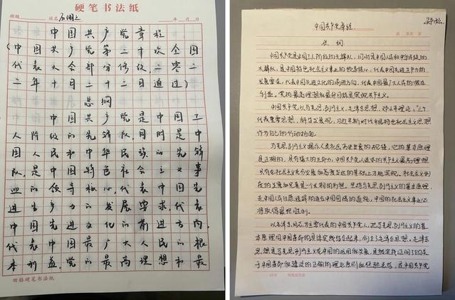 誊,即每一位党员将收到一份党章字帖(硬笔书法为主),并根据个人实际情况完成全文的摘抄和誊写,在一笔一划,一撇一捺的过程中真切感受文字的力量、学习的力量;