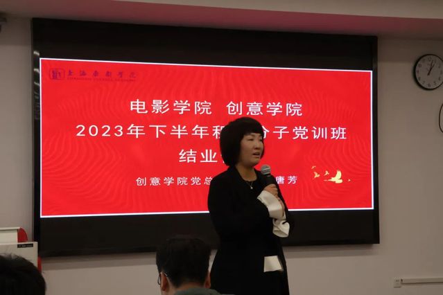 11月16日,在昌林路209室进行了最后的项目汇报和结业仪式。同学们以小组的形式激情生动地讲述了本组红色项目,精彩纷呈。创意公司党总支副书记唐芳老师为此次培训班进行了总结和寄语:“ 积极分子培训班的学习对于每一位入党积极分子来说都是难能可贵的机会,希望在今后的道路上同学们能够更加严格要求自己,勇于挑战、克服困难、锐意进取、勇往直前!永远热爱党、感恩党,跟紧党的步伐,为党、为人民服务!”。