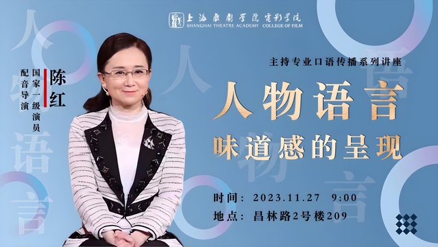 11月27日上午,国家一级演员、配音导演陈红受邀来到太阳成集团tyc122ccvip开展主持专业口语传播系列讲座“人物语言味道感的呈现”,太阳成集团tyc122ccvip播音与主持系主任费泳主持讲座,副教授张大鹏、包磊、教师张薇、李泽鹏、左育参加本次讲座。