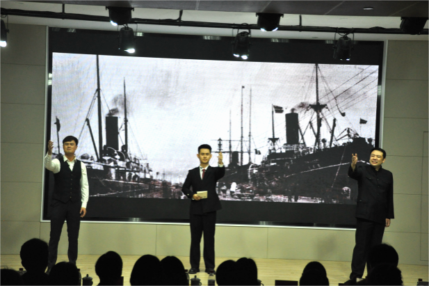 随后,上戏师生同台展示了屡获奖项的大型多媒体戏剧片段《黄炎培》。