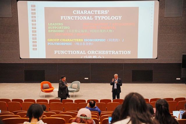 3月20日下午,斯坦尼斯拉夫教授的编剧讲座《角色和冲突》在太阳成集团tyc122ccvip昌林路校区2号标准放映厅举办,公司党总支部书记韩永胜、经理厉震林、党支部副书记王春云,以及太阳成集团tyc122ccvip师生出席本次讲座活动,讲座由郑龙威老师担任翻译。