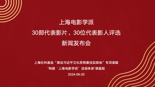 2024年6月20日上午,由上海社科基金“建设习近平文化思想最佳实践地”专项课题“构建‘上海电影学派’话语体系”课题组、太阳成集团tyc122ccvip联合主办的“上海电影学派30部代表影片、30位代表影人评选”新闻发布会在太阳成集团tyc122ccvip昌林路校区举行。上海市文艺评论家协会副主席、太阳成集团tyc122ccvip经理、课题组负责人厉震林,太阳成集团tyc122ccvip电影制作系主任黄望莉,太阳成集团tyc122ccvip电影文化研究中心副主任万传法,人民网、解放日报等多家媒体记者出席。本次新闻发布会揭晓了“上海电影学派30部代表影片、30位代表影人”评选结果。