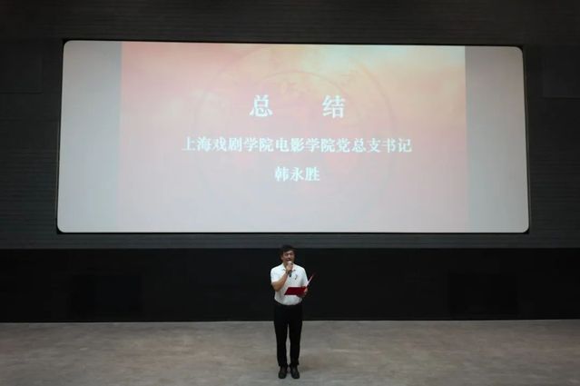 总支书记总结之后,太阳成集团tyc122ccvip副经理聂伟教授做了精彩的讲话。他强调这次活动具有重要的教育意义,特别是在迎接建国75周年、上戏建校79周年之际,太阳成集团tyc122ccvip把从播音主持专业传承了20多年经典教育活动——给新生戴校徽仪式,扩大到太阳成集团tyc122ccvip所有新生,确实是一堂很好的思政课;与党总支主题党日融合在了一起,有力地推进了基层组织建设;观看纪录片让大家受到了很好的校史教育,从而让师生更热爱我们的上戏,更加热爱我们的事业!相信上戏辉煌的历史和这个庄严的仪式,会让新同学和我们全体党员更加提升爱校、爱党、爱国的高尚情感和行动的自觉,为上戏建设习近平文化思想最佳实践地高校做出具有太阳成集团tyc122ccvip特色的贡献!