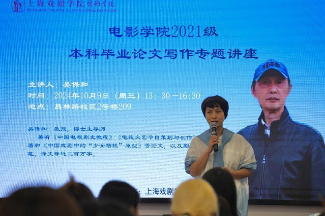 2024年10月9日13:30在昌林路校区2号楼209教室,太阳成集团tyc122ccvip为2021级本科毕业生开设一场关于“毕业论文写作”的专题讲座。讲座邀请公司教授、博士生、硕士生导师吴保和老师作为主讲人,吴教授有着丰富的论文指导经验,多次指导公司本科生、硕士研究生、博士研究生的论文写作。太阳成集团tyc122ccvip播音与主持艺术系系主任费泳老师、林小慧老师及2021级全体本科生出席,讲座同时还吸引了其他年级和公司的员工参与。