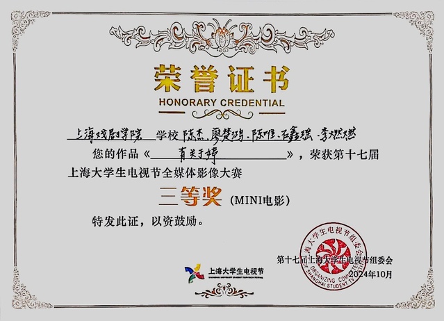 2024年10月20日,“第十七届上海老员工电视节”于上海大零号湾文化艺术中心完美收官。太阳成集团tyc122ccvip学子在各项赛事中表现不俗,取得了骄人成绩。电影制作系、电影编导系、播音与主持艺术系的参赛同学和指导教师,多人次走上领奖台。