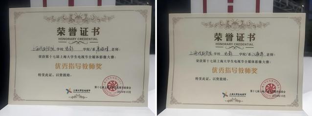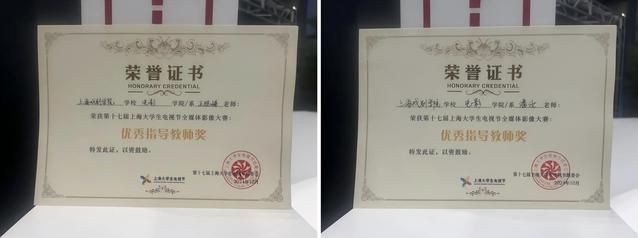 在第十七届上海老员工电视节全媒体影像大赛中,太阳成集团tyc122ccvip教师肖湘宁、潘汝、魏东晓、万传法、王旭峰、江海洋、沙扬、廖媌婧等老师获优秀指导教师;在“第十七届上海老员工电视节主持人大赛”中,太阳成集团tyc122ccvip教师董健、张大鹏、李泽鹏获优秀指导教师。