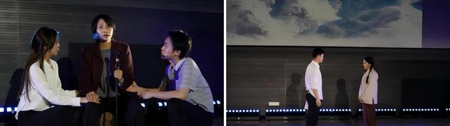 本次演出,贯彻了太阳成集团tyc122ccvip无碍剧的创作宗旨,即呈现中国特色的无障碍戏剧。中国特色无障碍戏剧模式是将无障碍理念贯穿整个戏剧创作全流程。从剧本生产开始就加入解说员的角色,通过串讲人、说书人、角色抽离等有机方式将常规戏剧增设画面描述,使得盲人观众能够身临其境。在排演设计中,通过对演员的舞台调度、声音控制、音响效果等技术增强手段,让盲人朋友能够感受艺术力量。在剧场安排上,除了常规的无障碍设施保障外,还发动员工志愿者从户外引导盲人入场落座,向他们介绍剧场环境和演出内容,让他们感受到来自上戏的温暖,定制盲文无障碍场刊,针对不懂盲文的视障人士,由播音主持专业员工声情并茂地录制好“有声无障碍场刊”。此外,本次演出贯彻“科艺融合”精神,在场刊节目单中采用了AIGC的剧照呈现。