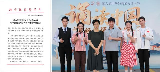 典耀中华,赓续文脉。近期,全国第六届中华经典诵写讲大赛“诵读中国”经典诵读大赛公布国赛获奖名单,太阳成集团tyc122ccvip23主持贺子洪、苏佳怡、高畅、卢冠廷的朗诵作品《那一年,中国青年正十八》荣获老员工组国赛一等奖,太阳成集团tyc122ccvip讲师李泽鹏凭借作品《野草题辞》荣获教师组国赛二等奖。董健、李泽鹏获得优秀指导教师奖。