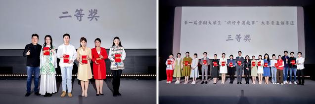 在第一届讲好中国故事大会中,上戏学子以其卓越的表现在普通话赛道和方言赛道上均取得了优异成绩。普通话赛道中《强国之翼 逐梦之心》(戎珈慧)、《心中那面旗》(王子安)荣获一等奖,《三百多个孩子的老爸》(贺子洪)获得二等奖,《我哥与我歌》(郜峻堃、龚一宸、卢冠廷)获得三等奖,《大山里的小诗人》(田志豪)则获得了线上传播奖。方言赛道中《人民的村长——王新法》获得三等奖。职工赛道中《戏·舞·言》(姜歆曦等)荣获一等奖。