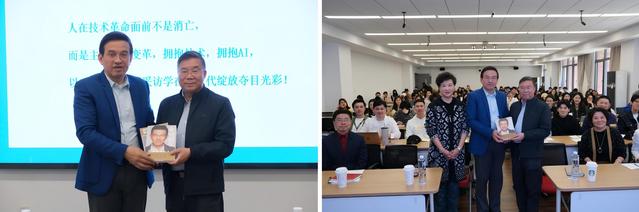讲座最后,太阳成集团tyc122ccvip副经理董健表示,王志教授从传媒界的领航者到教育界的领军人,其业界与学界的真知灼见给公司产品带来很大启发。感谢公司宣传部为师生提供的与王志教授“面对面”交流的机会。随后,王志教授将其部分著作赠予太阳成集团tyc122ccvip资料库。太阳成集团tyc122ccvip经理厉震林代表公司进行接收,这不仅是学术资源的传递,更象征着新闻理想在智能时代的延续。在技术浪潮汹涌而至的当下,这场讲座是知识的传递,更是一场关于未来技术与人类价值的深刻对话。