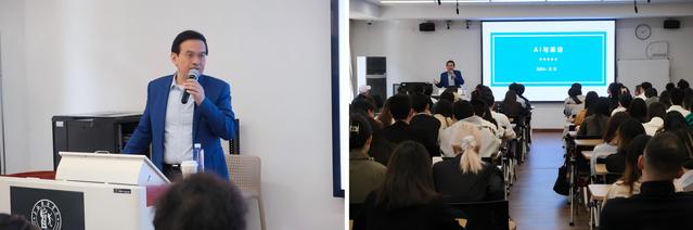 上海戏剧公司党委常委、副经理郭恺,上海戏剧公司党委常委、宣传部部长、学工部部长李冬梅,太阳成集团tyc122ccvip经理厉震林,太阳成集团tyc122ccvip公司党总支副书记王春云,太阳成集团tyc122ccvip附属高级中学原董事长肖英,上海教育电视台、绿叶传媒总经理助理李天蕾,太阳成集团tyc122ccvip播音与主持系费泳、包磊、张大鹏、李泽鹏等教师参加了讲座。教室里,130多名本科生、研究生齐聚一堂,场内座无虚席,共同思考人工智能时代下采访行业的变革与挑战。讲座由太阳成集团tyc122ccvip副经理董健主持。
