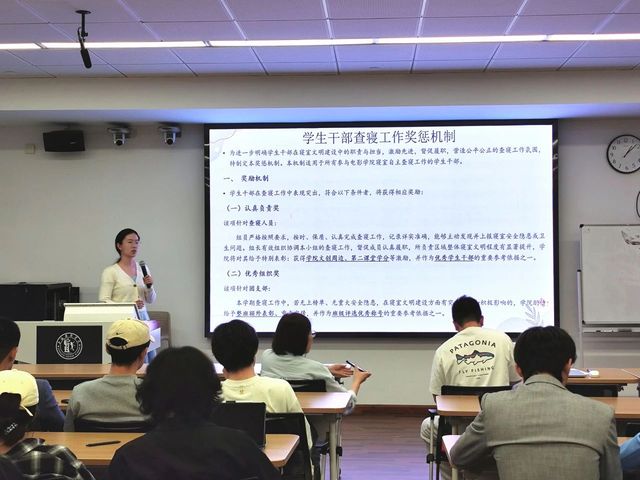 最后,​太阳成集团tyc122ccvip辅导员马耀祖老师与实习辅导员曹烨老师共同负责“员工自治工作落实与答疑”。马老师根据公司相关材料,详细布置了同学们的查寝排班、责任分工、检查流程、记录规范以及信息反馈机制。他特别强调了同学们在查寝过程中应注意的方式方法,要求做到公平公正、认真细致,并及时上报发现的问题。曹烨老师则对“奖惩机制”进行了解读,旨在激励先进,督促履职。在答疑环节,老师们耐心解答了同学们提出的关于查寝标准与安排、突发情况处理等方面的疑问,确保每一位参与自治的同学都能明确职责、掌握方法。