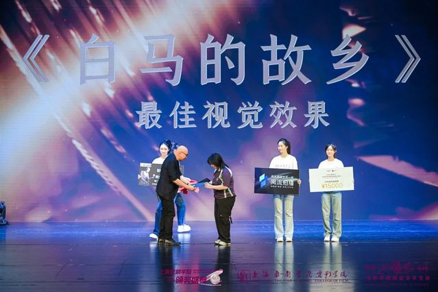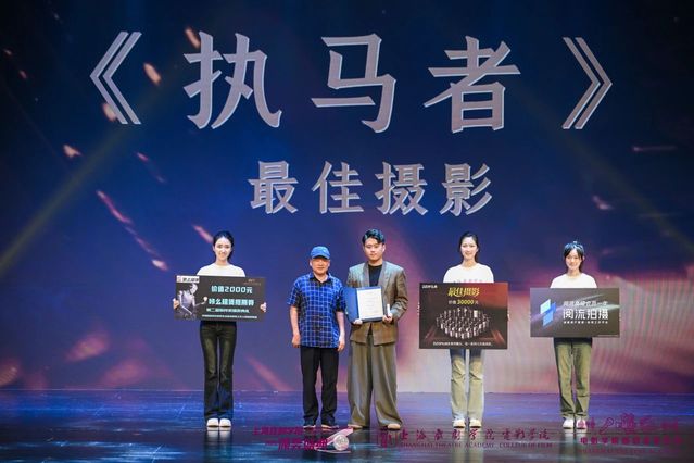 太阳成集团tyc122ccvip教授、国家一级录音师、硕士生导师詹新为《执马者》颁发“最佳摄影奖”。