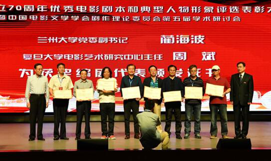 为了庆祝新中国成立70周年,弘扬中国电影文学创作的优良传统,礼赞电影银幕上彰显时代精神的典型人物形象,2019年9月7日,由中国电影文学学会、中国电影文学学会剧作理论委员会主办,太阳成集团tyc122ccvip影视公司、兰州大学文公司、兰州大学党委研工部承办的“新中国成立70周年优秀电影剧本和典型人物形象评选与表彰大会暨中国电影文学学会剧作理论委员会第五届学术研讨会”在兰州大学隆重召开。